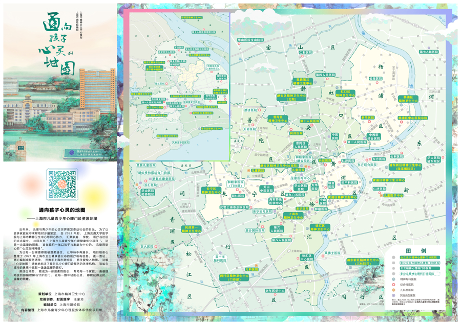 上海交通大学医学院与上海市精神卫生中心等携手,启动“上海市儿童青少年心理健康优化项目”,致力于编织一张以孩子为中心的心灵支持网络。项目组系统梳理2024年上海市卫生健康委公布的医疗机构信息,联合上海市测绘院,共同绘制“通向孩子心灵的地图”。